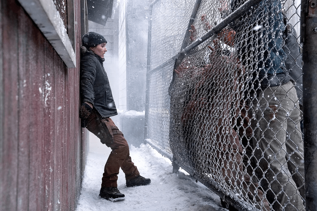 Abby goes off alone to scout, but stumbles into a nest of infected buried under the snow. A tense chase ensues. Just as she’s about to be overwhelmed, she’s saved—ironically—by Joel and Dina.