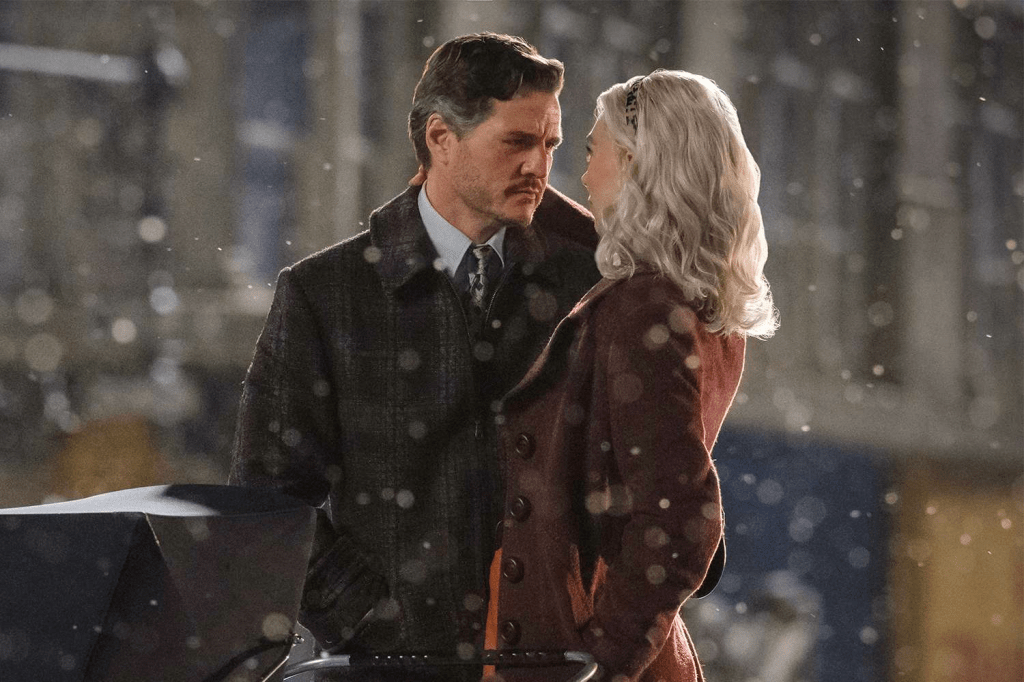 Vanessa Kirby, Pedro Pascal, Joseph Quinn, and Ebon Moss-Bachrach bring the Fantastic Four to life on Earth-828 in 1960. The film smartly skips yet another origin story—most audiences already know who the Fantastic Four are—and instead drops us straight into the middle of Reed Richards and Sue Storm’s relationship. Their love, their conflicts, and Sue’s impending motherhood become the emotional throughline of the story. Kirby and Pascal’s chemistry is magnetic and intimate; it feels lived-in, grounded, and deeply human, giving weight to the film’s family-driven themes.