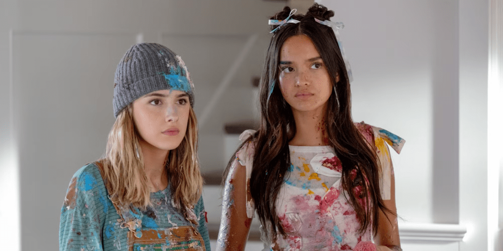 Julia Butters and Sophia Hammons step in as sharp, fresh voices of a younger generation, grounding the story in the now. Their performances keep the film topical and pop-culture-savvy, peppered with timely references, quick-witted dialogue, and a soundtrack that nods to both current hits and early-2000s teen movie staples. The humor mines a lot from the generational push-and-pull — watching the older generation navigate teen life in a tech-saturated, slang-filled world, and the younger generation suddenly tasked with adult responsibilities and limitations. The result is not only funny, but often insightful.