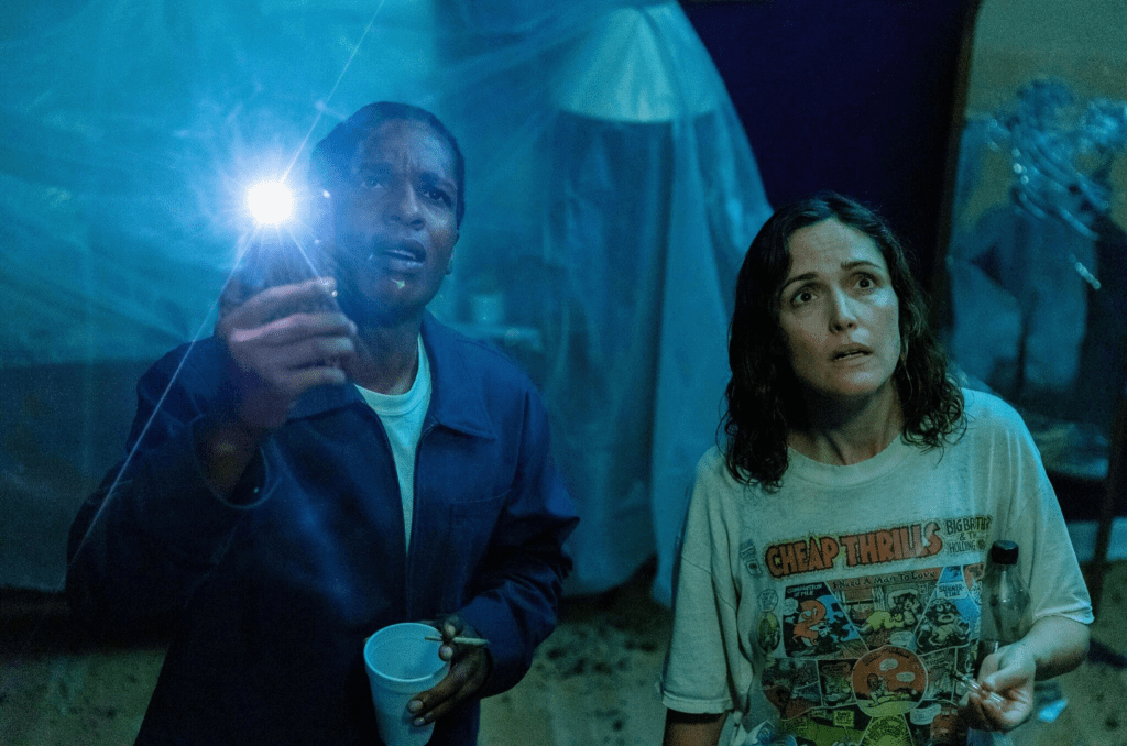 Everything in this film orbits Byrne’s performance, and she delivers nothing short of spectacular. The supporting cast drifts in and out of her world like satellites. Conan O’Brien, as her colleague-therapist, provides attempts at grounding Linda with a soft, minimal approach that never quite penetrates her walls. A$AP Rocky’s James — the motel superintendent who enters the story after a massive hole collapses in Linda’s ceiling — embodies a kind of ambiguous comfort. He floats at the periphery of her pain, both anchor and distraction. Each character offers something intangible: empathy, assistance, companionship. But none can truly offer Linda what she needs most.