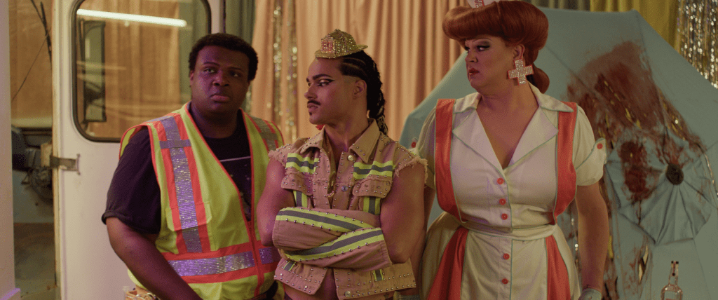 The film centers on Dre (Katy O’Brian) and a cast of performers, artists, and outsiders who find themselves navigating an outbreak mid–drag show. While the zombies provide plenty of carnage, the emotional core lies in the relationships — the chosen families, the rivalries, and the love that persists even as the world falls apart.